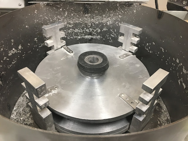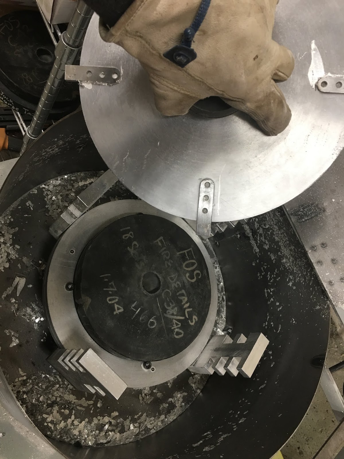 Once in the machine, it's clamped in place by a top plate and air from a compressor.