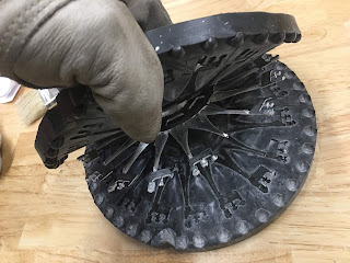 Often on the first spin, a few parts might not form correctly or at all. The metal flows better once they are warmed up. Also, I forgot to mention, before the mold is put in the machine, it's dusted with a talc powder that also helps the metal flow.